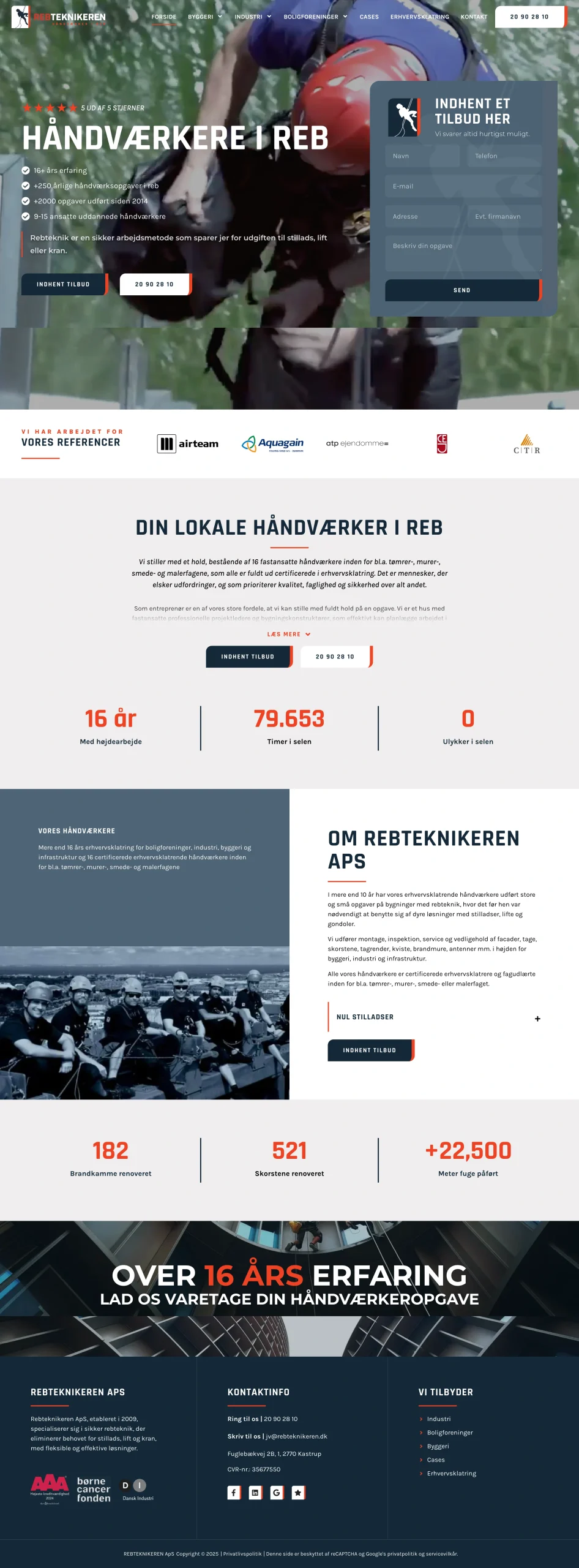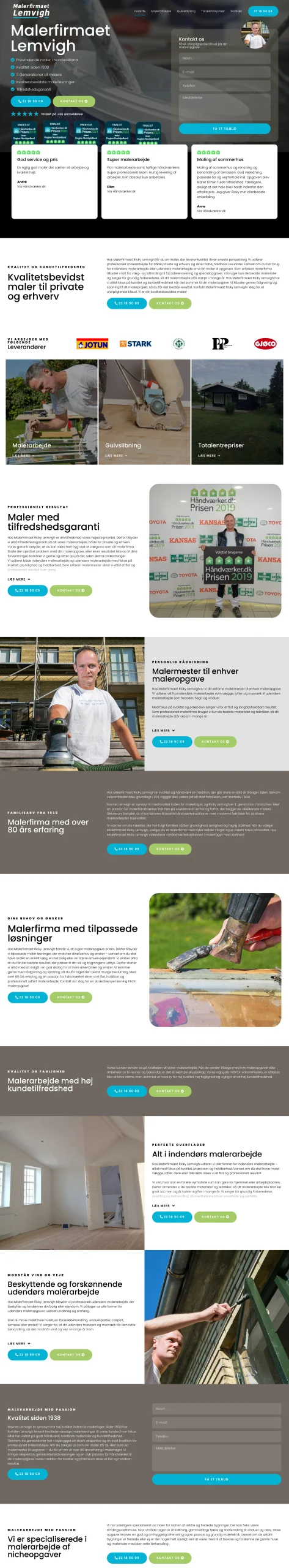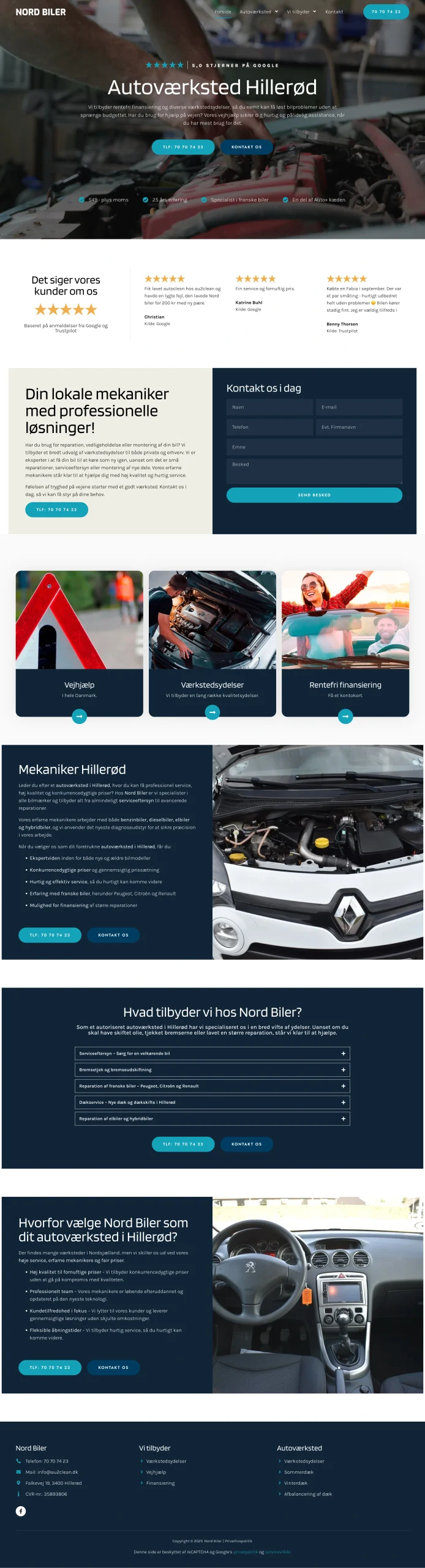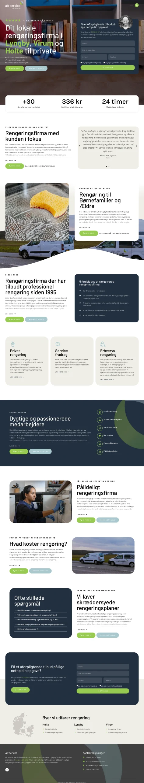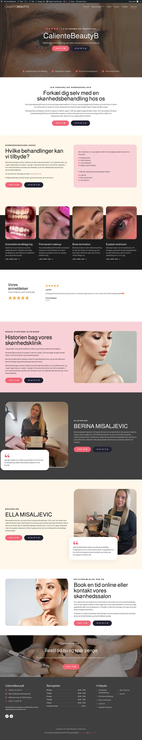En væsentlig del af mit arbejde har været at anvende AIDA-modellen (Rold, 2019, s. 53) i opsætningen af hjemmesiders forsider. Her har jeg bl.a. fokuseret på at fange opmærksomhed med visuelle elementer som baggrundsvideoer, præsentere unikke salgspunkter (USPs) og sikre en tydelig call-to-action (CTA), så den besøgende hurtigt kan tage stilling til, om siden opfylder deres behov. I denne forbindelse har jeg også arbejdet med CRAP-modellen (BR Offset, 2021) for at skabe en rød tråd i designet og forstærke hjemmesidens visuelle identitet. Samtidig har jeg anvendt Gestaltlovene (Rold, 2019, s. 122) for at sikre et æstetisk og sammenhængende design.